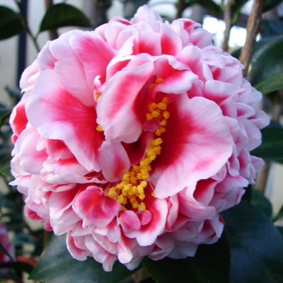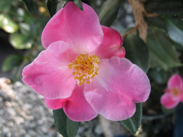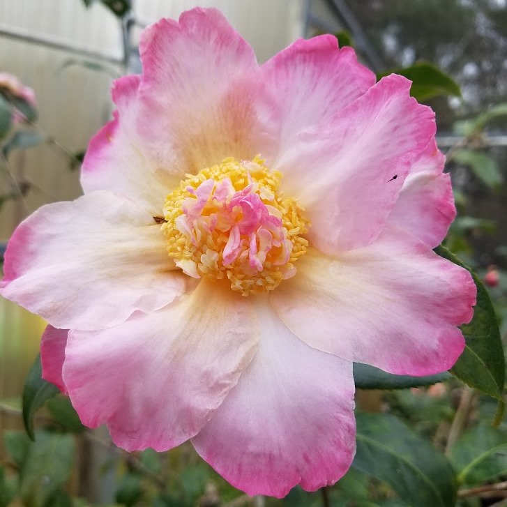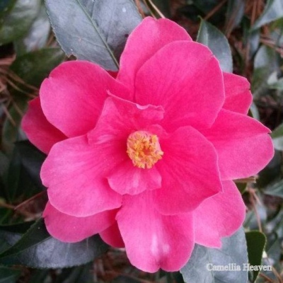 One of the first successful crosses of Camellia azalea and ‘Wendy’, a japonica, by the late Valdosta, GA hybridizer Hulyn Smith.