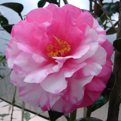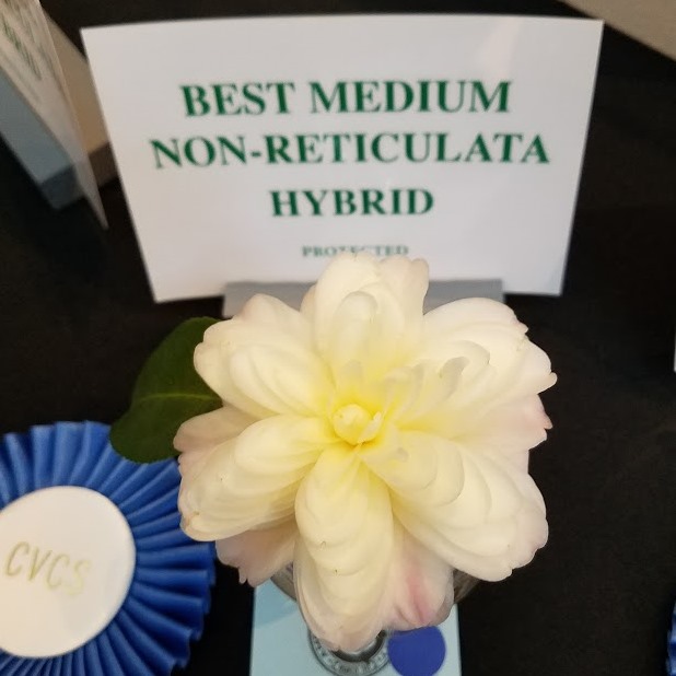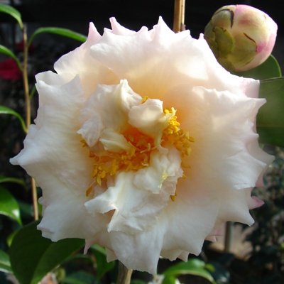 This is the first known successful cross between a japonica and the specie ‘Granthamiana’ made by Walter Homeyer in 1974. I like it. It is different and it gets a lot of attention. Plant grows okay but maybe a little slow.