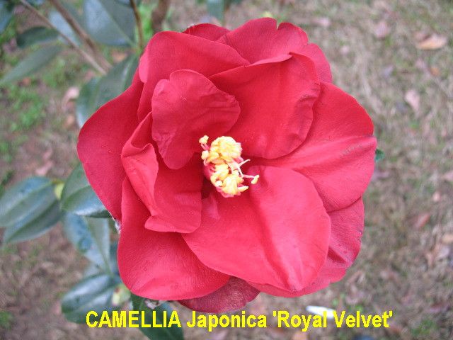 Dark velvet red. Large semi-double. Vigorous compact upright growth. Mid season bloom.