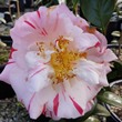 Light pink striped carmine. Med semidouble. Vigorous upright compact