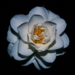 White. Medium formal double. Slow bushy growth. Early bloom.