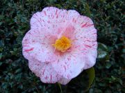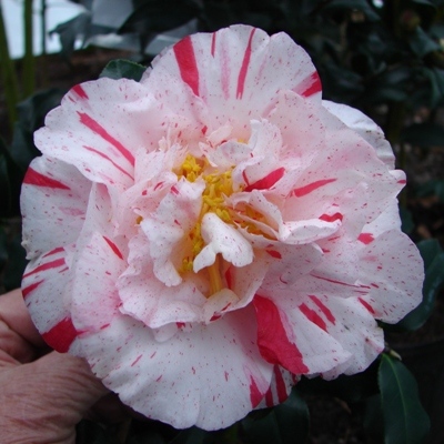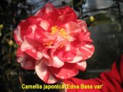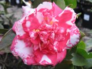 Deep pink variegated white. Large semidouble. Avg upright growth. Mid