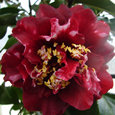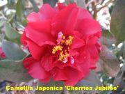 Dark mahogany red. Medium semidouble. Average compact growth. Early to late