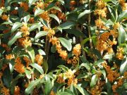 We also grow another Osmanthus fragrans cultivar called Aurantiacus or commonly called "Orange Blossom" tea olive. Unlike the more common Osmanthus fragrans, the Aurantiacus only blooms in fall and only on plants that are 4-5 feet tall. However, when it blooms it really puts on quite a show with bright orange blooms almost completely covering the branches. Same wonderful fragrance too!